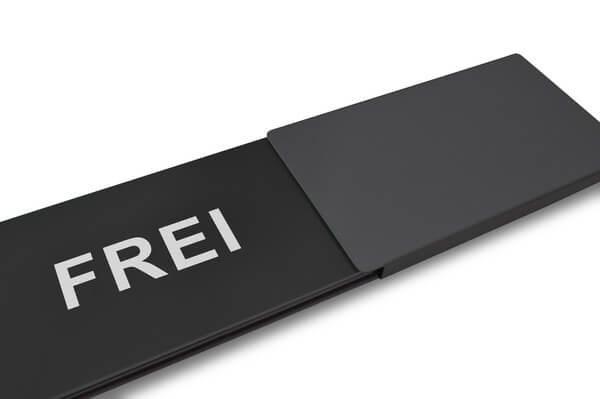 "FREI/BESETZT" Schiebeschild Style (schwarzer Schieber)