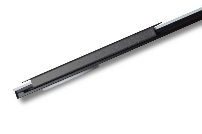 • Zwischen Metallschieber und Textfeld wurde bewusst eine Lücke erarbeitet, die ein Verkratzen des Textfeldes verhindert